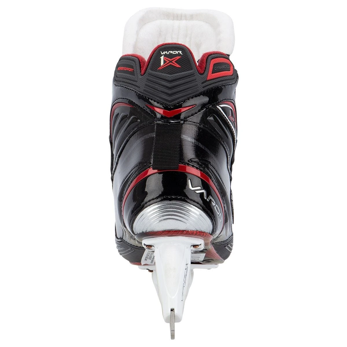 The Vapor 1X boot has more volume in the width and ankle, when compared to the Supreme counterpart. This means that the eyelets are moved forward so there can be more wrap and tightness in the ankle area. The boot has a fully symmetrical design where the inside and outside edge of the boot is the same height to give the goalie more support running up the inside and outside of the leg. Also, the comfort edge padding adds to the softness the skate provides. The tongue of the skate features a Dynamic Flex design which acts like a spring, allowing the goalie to get forward flex when in a stance but keep their support and fit in the boot for all other movements.