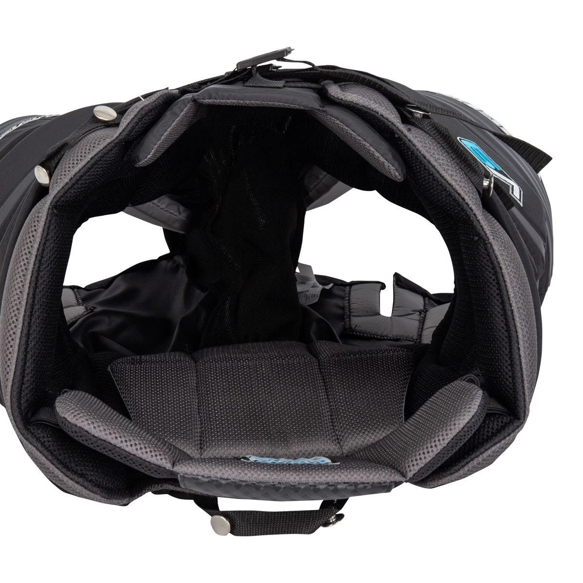 Down at the thighs, a new full wrap around thigh guard will make sure the entire goalie’s leg is protected, specifically for the high impact zones. You will also notice the thigh cradle technology that will help increase thigh stability which, helps the thighs stay in place when moving around the crease and providing a reliable blocking surface. Finally, the internals are made of aero-spacer mesh lining for comfort and ventilation.