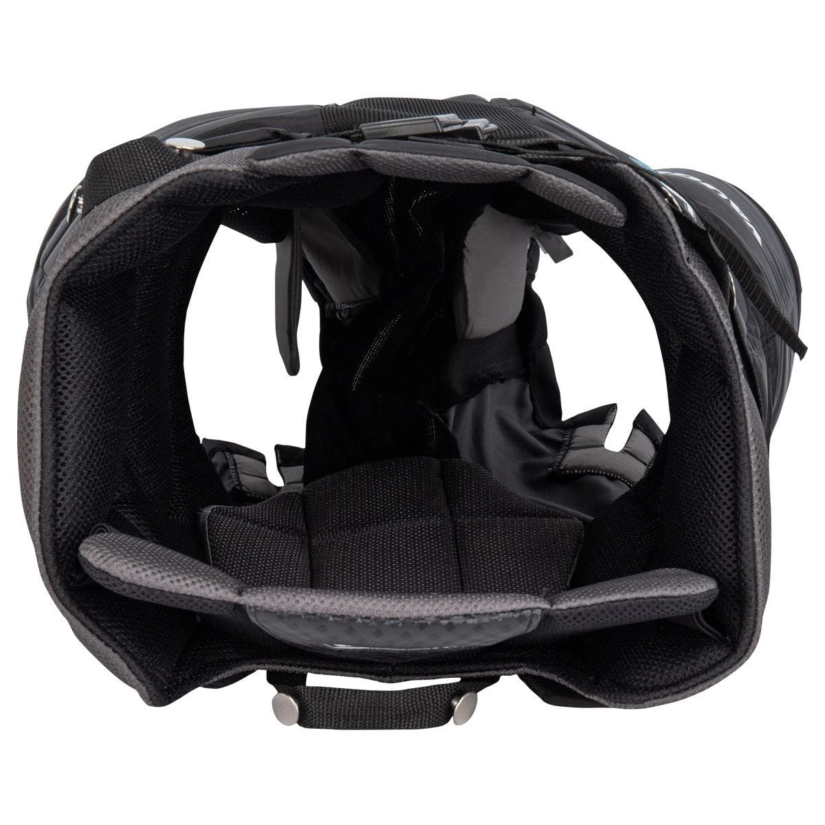 Down at the thighs, a new full wrap around thigh guard will make sure the entire goalie’s leg is protected, specifically for the high impact zones. You will also notice the thigh cradle technology that will help increase thigh stability which, helps the thighs stay in place when moving around the crease and providing a reliable blocking surface. Finally, the internals are made of aero-spacer mesh lining for comfort and ventilation.