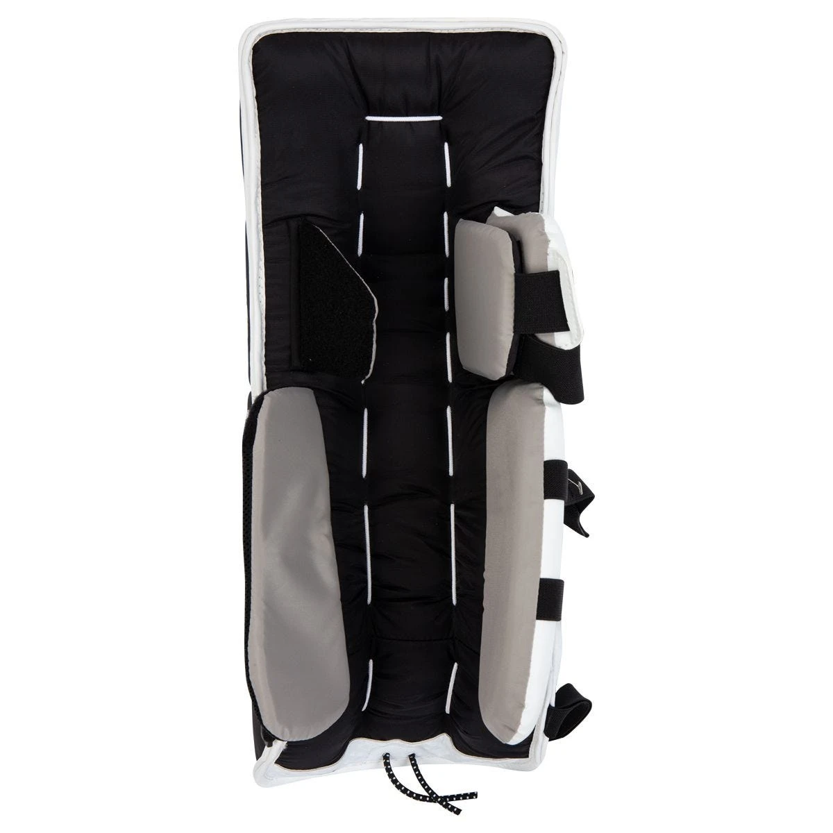 Within the leg channel on the V9 leg pads, there are new materials which are designed to be more durable and resistant to wear over time. The calf wraps have been redesigned to better fit the goalies anatomical shape of their leg.
