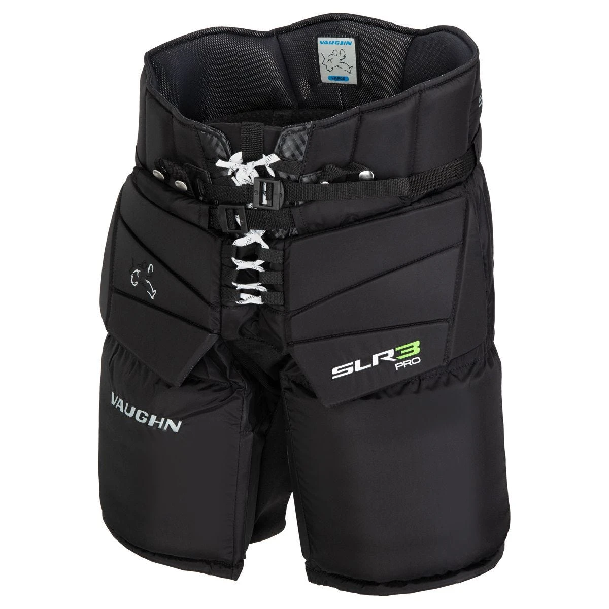 The lower portion of the SLR3 Pro features a wide 11 inch thigh guard profile for increased net coverage and large HD foam five-hole blocks. Double layered side groin pads and padding over inner thigh seams provide increased flexibility and protection coverage.
