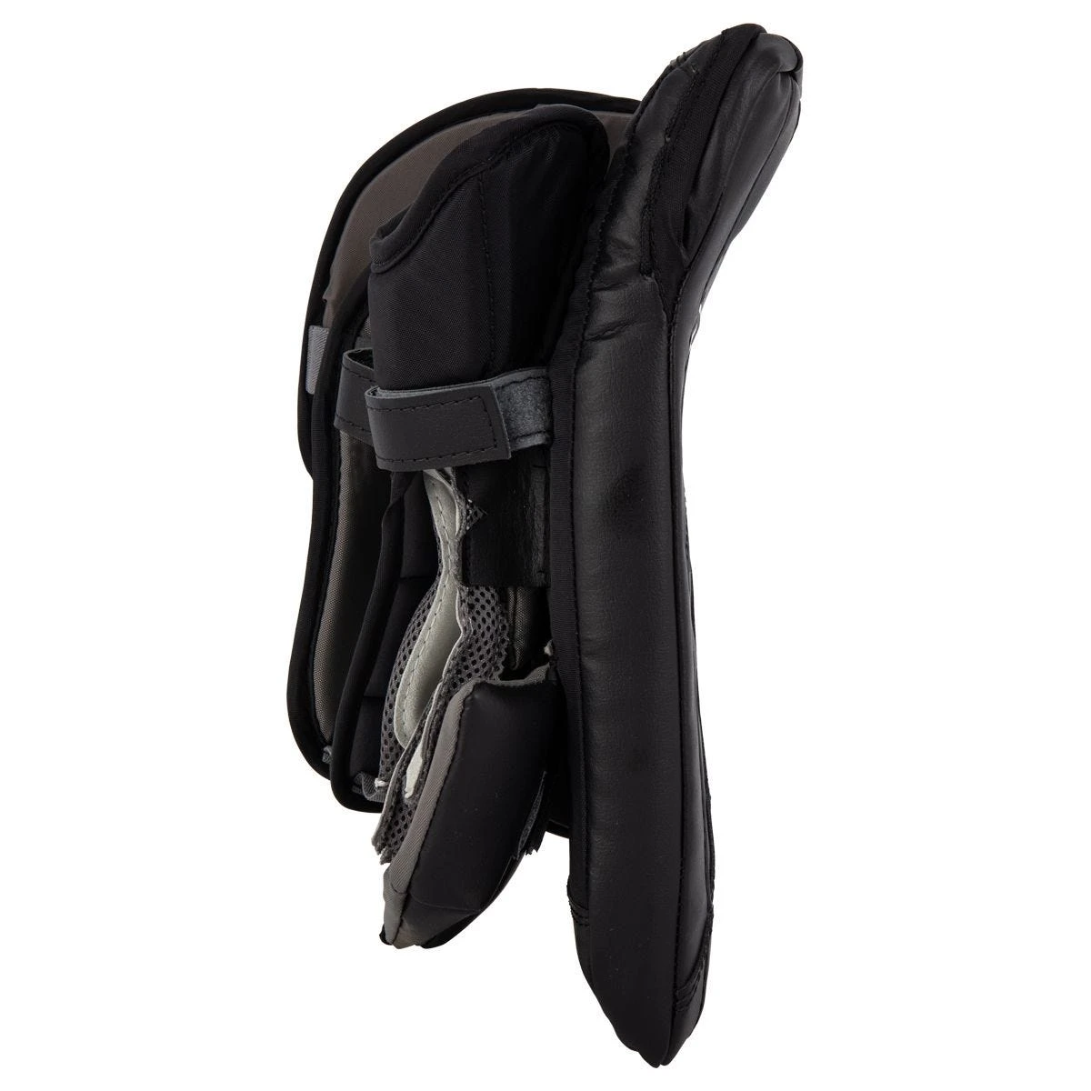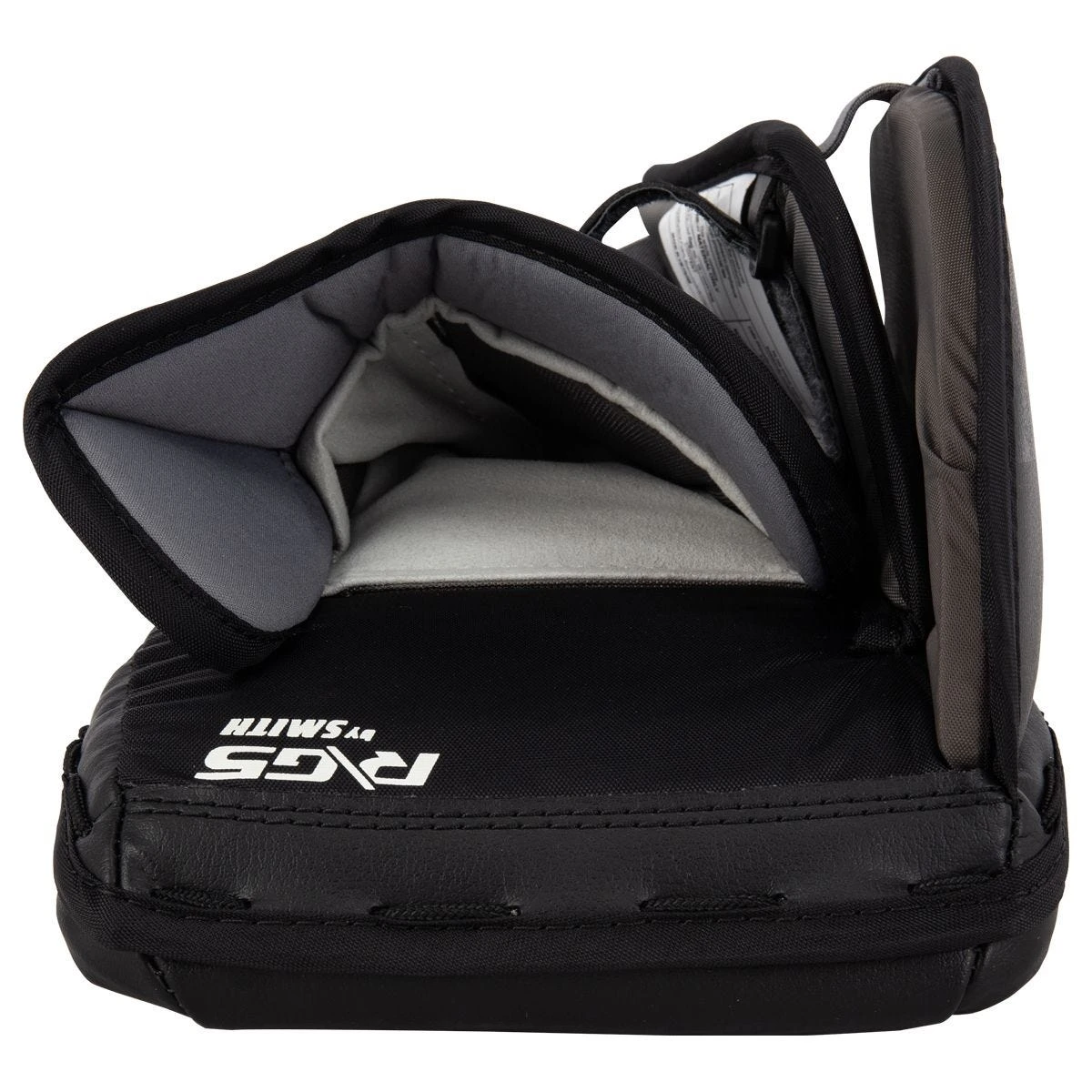 Finally, on the side of the G5 blocker, you will find a specifically designed sidewall and finger protection. This shape is made especially for younger goaltenders so they can hold their stick and still have ample coverage.